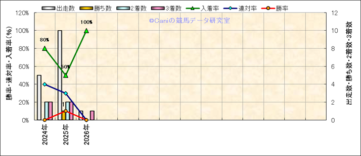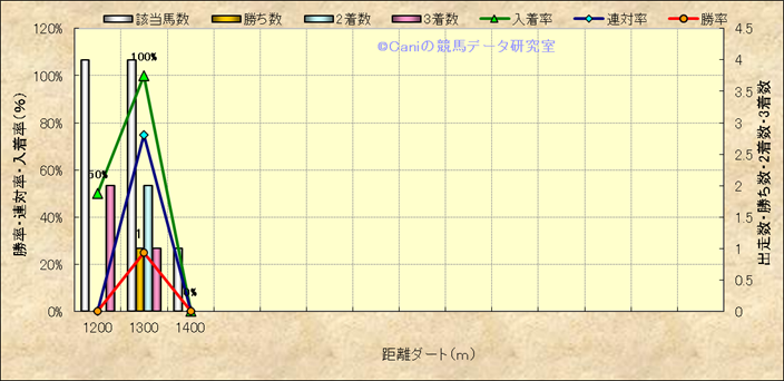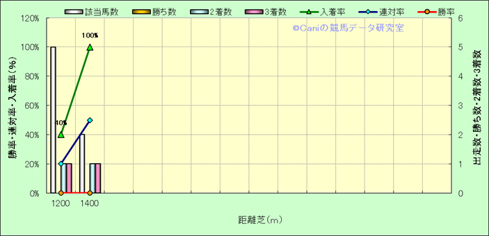 | 最長 | 1400 | 最大 | 56 | 最速 | 33.6 | 33.5 | ()内:上がり順位 | 最大 | 444 | |||||||||||||||||