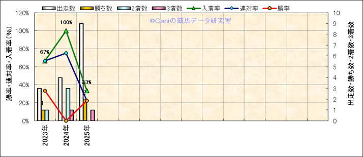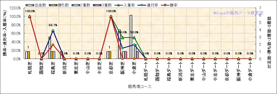 | 最長 | 1400 | 最大 | 58 | 最速 | 33.5 | 33.6 | ()内:上がり順位 | 最大 | 518 | |||||||||||||||||