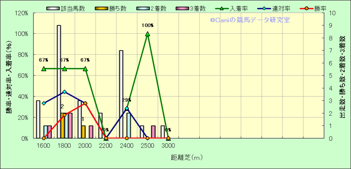 | 距離別解析(芝) | タイセイフェリークの解析 | |||||||||||||||||||||||||