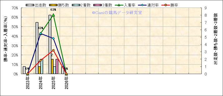 | 最長 | 2400 | 最大 | 58 | 最速 | 36.2 | 33.5 | ()内:上がり順位 | 最大 | 474 | |||||||||||||||||