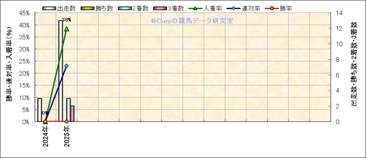 | 最長 | 2400 | 最大 | 55 | 最速 | 35.7 | 34 | ()内:上がり順位 | 最大 | 466 | |||||||||||||||||