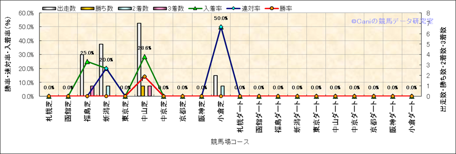 | 2024/10/20 | 新潟 | 1 | 芝 | 2000 | 未勝利 | 10 | 2 | 10 | 6 | 黛 弘人 | 56 | 2分03秒8 | 0.6 | 37.3 | 36.7 | 最内 (4) | 7 | 晴 | 稍重 | 430 | 47.1 | 0 | 0 | |||