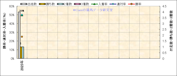 | 2025/8/24 | 新潟 | 1 | 芝 | 1600 | 未勝利 | 7 | 1 | 3 | 1 | 杉原 誠人 | 55 | 1分37秒4 | 0 | 38.4 | 33.3 | 内 (4) | 1 | 晴 | 良 | 440 | 13.4 | 1340 | 970 | |||