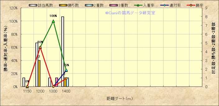 | 最長 | 1400 | 最大 | 58 | 最速 | 34.1 | 34.2 | ()内:上がり順位 | 最大 | 464 | |||||||||||||||||