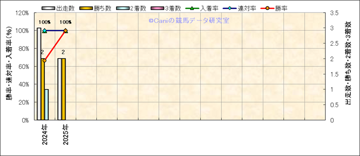 | 2024/7/28 | 新潟 | 3 | 芝 | 1800 | 新馬 | 9 | 6 | 1 | 1 | 団野 大成 | 55 | 1分48秒6 | 0.1 | 37.5 | 33.9 | 中 (2) | 4 | 曇 | 良 | 472 | 2.4 | 240 | 110 | |||