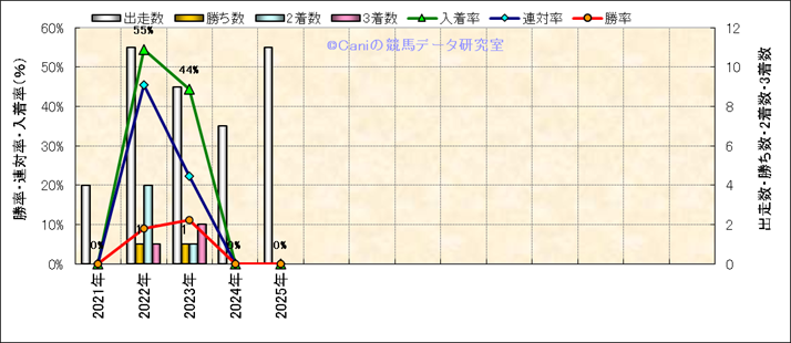 | ダート稍重 | 2 | ■■ | ||||||||||||||||||||||||