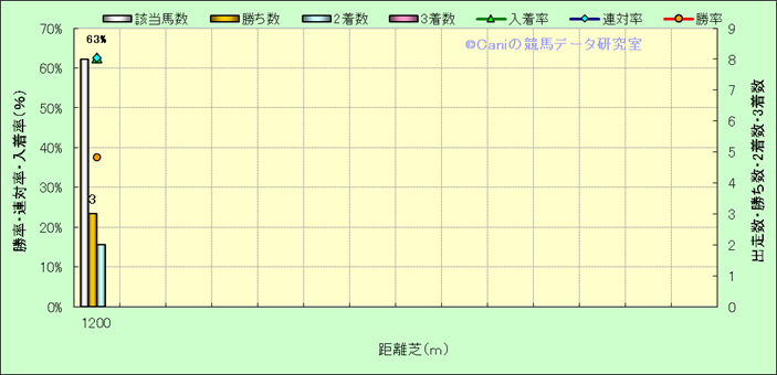 | 最長 | 1200 | 最大 | 57 | 最速 | 33.7 | 33.1 | ()内:上がり順位 | 最大 | 508 | |||||||||||||||||