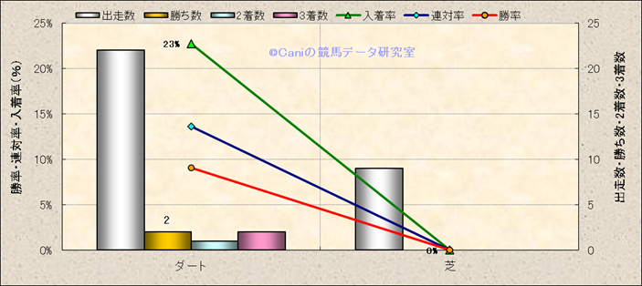 | 芝・ダート別 | メイショウミツヤスの解析 | |||||||||||||||||||||||||