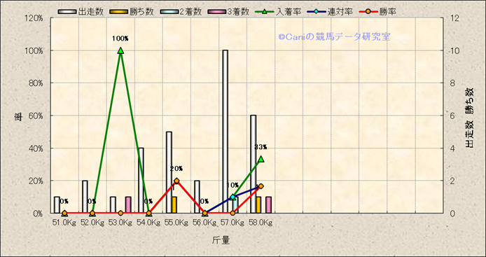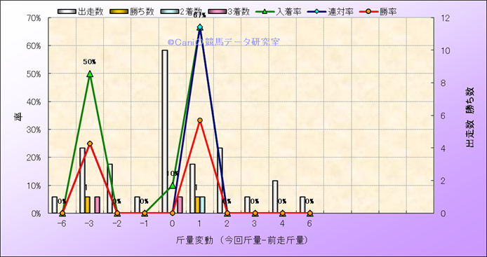 | 斤量変動別解析 | メイショウミツヤスの解析 | |||||||||||||||||||||||||
