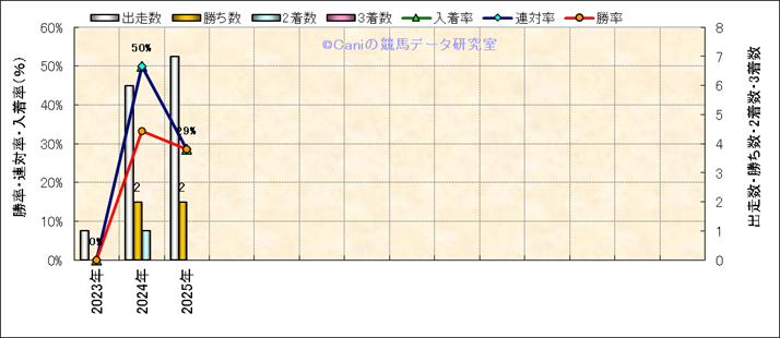 | 2025/8/9 | 中京 | 7 | ダート | 1800 | 1600万 | 三河ステークス | 16 | 14 | 5 | 15 | A.バデル | 58 | 1分56秒8 | 4.1 | 38.2 | 41.4 | 大外 (15) | 9 | 晴 | 良 | 484 | 12.2 | 0 | 0 | ||