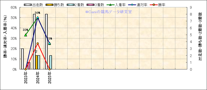 | 最長 | 2400 | 最大 | 58 | 最速 | 35.8 | 36.2 | ()内:上がり順位 | 最大 | 462 | |||||||||||||||||