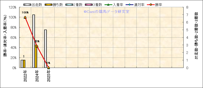 | 最長 | 2500 | 最大 | 58 | 最速 | 36.2 | 36.1 | ()内:上がり順位 | 最大 | 502 | |||||||||||||||||