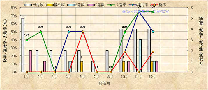 | 開催月別 | メイショウゲキリンの解析 | |||||||||||||||||||||||||