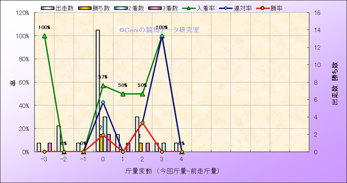| 斤量変動別解析 | メイショウゲキリンの解析 | |||||||||||||||||||||||||