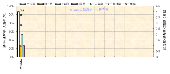 | 2025/11/24 | 東京 | 11 | 芝 | 1800 | オープン | 東京スポーツ杯2 | 12 | 8 | 5 | 2 | T.マーカンド | 56 | 1分46秒0 | 0 | 37.1 | 32.7 | 外 (1) | 6 | 晴 | 良 | 468 | 10.5 | 0 | 230 | ||