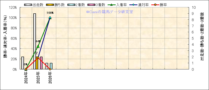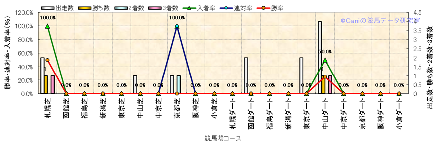 | 2025/8/23 | 札幌 | 10 | 芝 | 1200 | 1000万 | ワールドASJ第 | 14 | 4 | 1 | 3 | 横山 典弘 | 56 | 1分09秒1 | 0.1 | 33.9 | 35.2 | 最内 (8) | 1 | 晴 | 良 | 516 | 1.8 | 0 | 130 | ||