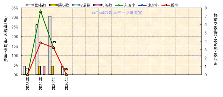| ダート稍重 | 6 | ■■■■■■ | ||||||||||||||||||||||||