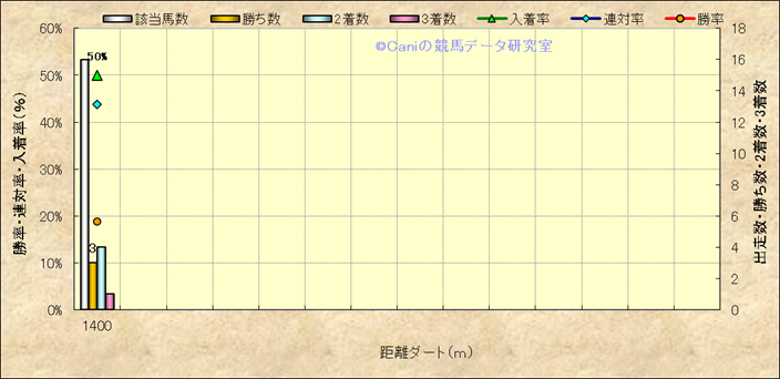 | 最長 | 1400 | 最大 | 58 | 最速 | 34.6 | 35.3 | ()内:上がり順位 | 最大 | 538 | |||||||||||||||||