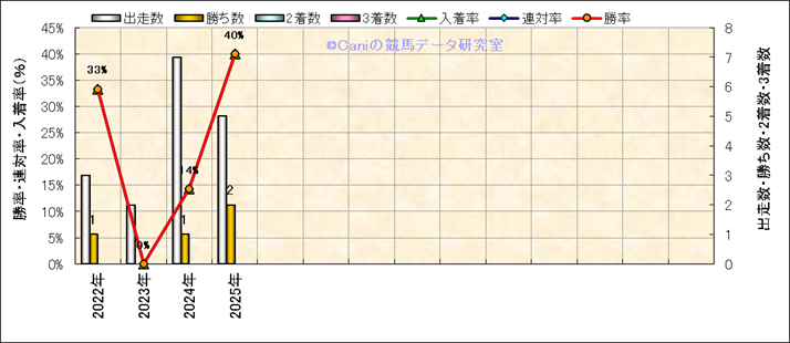 | 2025/11/9 | 福島 | 11 | 芝 | 1200 | オープン | みちのくステーク | 16 | 16 | 5 | 13 | 角田 大和 | 55 | 1分09秒7 | 1.4 | 33.8 | 35.9 | 外 (14) | 6 | 小雨 | 良 | 480 | 11.3 | 0 | 0 | ||