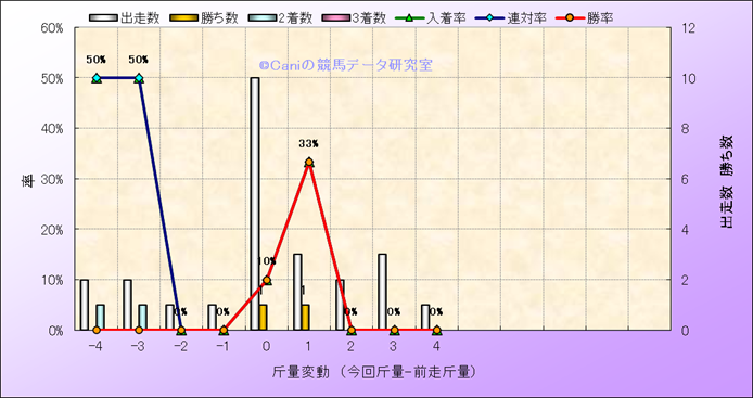 | 斤量変動別解析 | タガノチョコラータの解析 | |||||||||||||||||||||||||