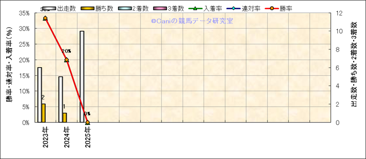 | 2025/11/2 | 京都 | 10 | 芝 | 3000 | 1600万 | 古都ステークス | 13 | 11 | 9 | 7 | 横山 琉人 | 52 | 3分04秒9 | 1.1 | 38.8 | 35.4 | 最内 (8) | 5 | 晴 | 良 | 428 | 20.1 | 0 | 0 | ||
