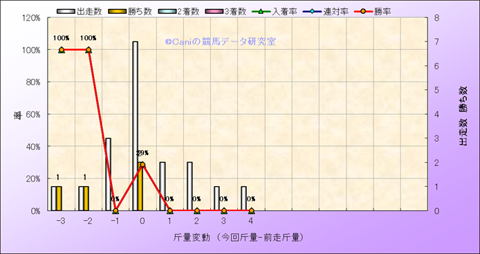 | 斤量変動別解析 | メイショウカゼマチの解析 | |||||||||||||||||||||||||