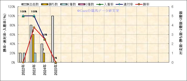 | 2025/8/31 | 新潟 | 11 | 芝 | 2000 | オープン | 新潟記念 | 17 | 1 | 3 | 6 | 津村 明秀 | 56 | 1分58秒3 | 0.3 | 37.3 | 33.1 | 内 (7) | 5 | 晴 | 良 | 476 | 4.7 | 0 | 0 | ||