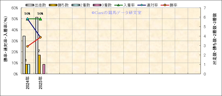 | 最長 | 1400 | 最大 | 55 | 最速 | 33.2 | 33.6 | ()内:上がり順位 | 最大 | 438 | |||||||||||||||||