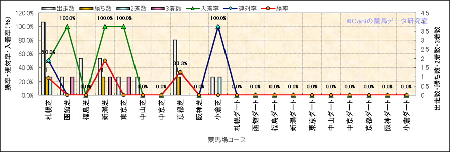 | 2023/8/26 | 札幌 | 2 | 芝 | 1800 | 未勝利 | 5 | 1 | 3 | 5 | 鮫島 克駿 | 55 | 1分54秒2 | 0.8 | 40 | 35.5 | 内 (5) | 2 | 晴 | 良 | 444 | 6.2 | 0 | 0 | |||