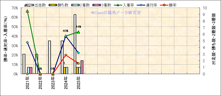 | 最長 | 1400 | 最大 | 56 | 最速 | 23.8 | 33.7 | ()内:上がり順位 | 最大 | 496 | |||||||||||||||||