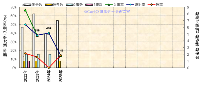 | ダート稍重 | 0.667 | ■ | ||||||||||||||||||||||||