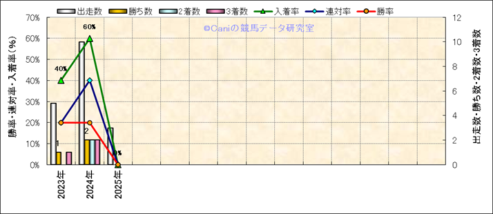 | 最長 | 2400 | 最大 | 58 | 最速 | 36.1 | 34.1 | ()内:上がり順位 | 最大 | 518 | |||||||||||||||||