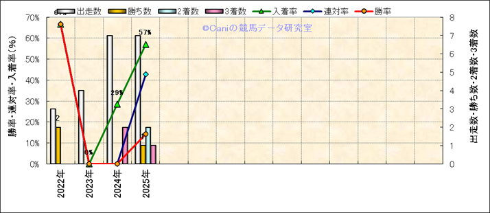 | 最長 | 2400 | 最大 | 56 | 最速 | 35.0 | 33.7 | ()内:上がり順位 | 最大 | 454 | |||||||||||||||||
