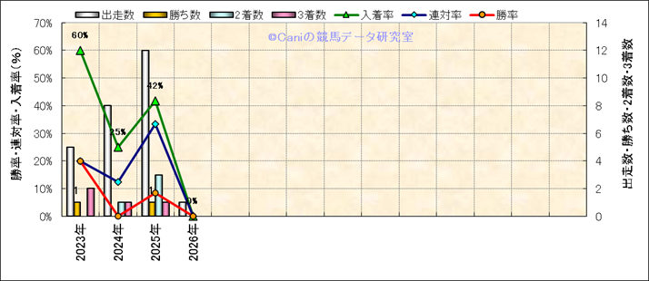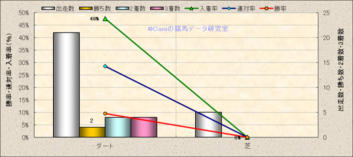 | ダート稍重 | 2 | ■■ | ||||||||||||||||||||||||