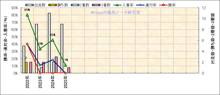 | 最長 | 1600 | 最大 | 58 | 最速 | 33.8 | 33.2 | ()内:上がり順位 | 最大 | 488 | |||||||||||||||||