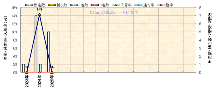 | 最長 | 1400 | 最大 | 56 | 最速 | 34.6 | 35.3 | ()内:上がり順位 | 最大 | 470 | |||||||||||||||||