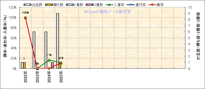 | ダート稍重 | 2 | ■■ | ||||||||||||||||||||||||
