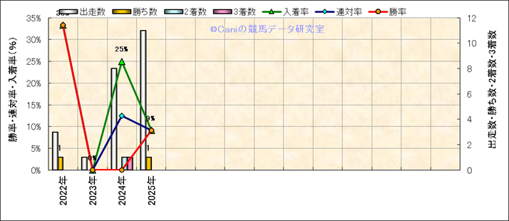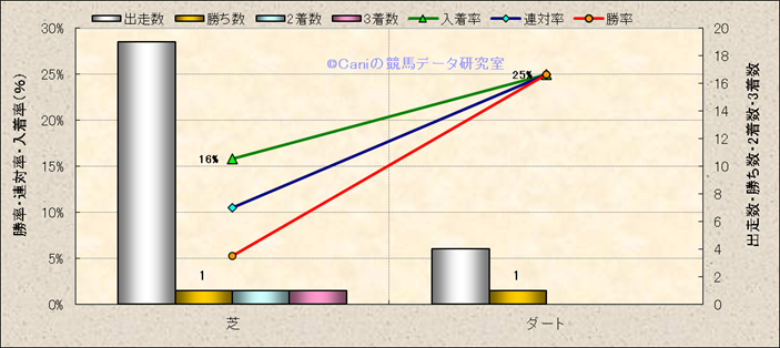 | ダート稍重 | 2 | ■■ | ||||||||||||||||||||||||