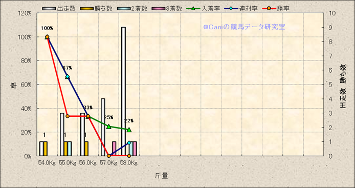| 斤量変動別解析 | モズロックンロールの解析 | |||||||||||||||||||||||||