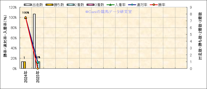 | 2025/11/9 | 福島 | 7 | 芝 | 1200 | 500万 | 16 | 1 | 3 | 7 | 上里 直汰 | 54 | 1分09秒5 | 0.4 | 35 | 34.5 | 最内 (3) | 12 | 曇 | 良 | 450 | 8.3 | 0 | 0 | |||