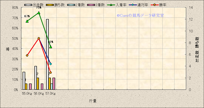 | 斤量変動別解析 | ピュアキアンの解析 | |||||||||||||||||||||||||