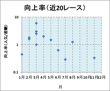| 向上率=人気/着順の平均(近20レース) | |||||||||||||||||||||||||||||||||||||