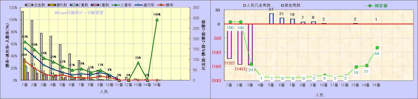 人気凡走馬:1-3番人気で着外、激走馬:5-18番人気で入着 |