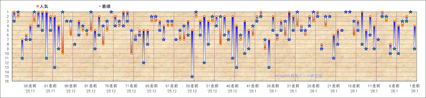 近100騎乗の人気と着順 |