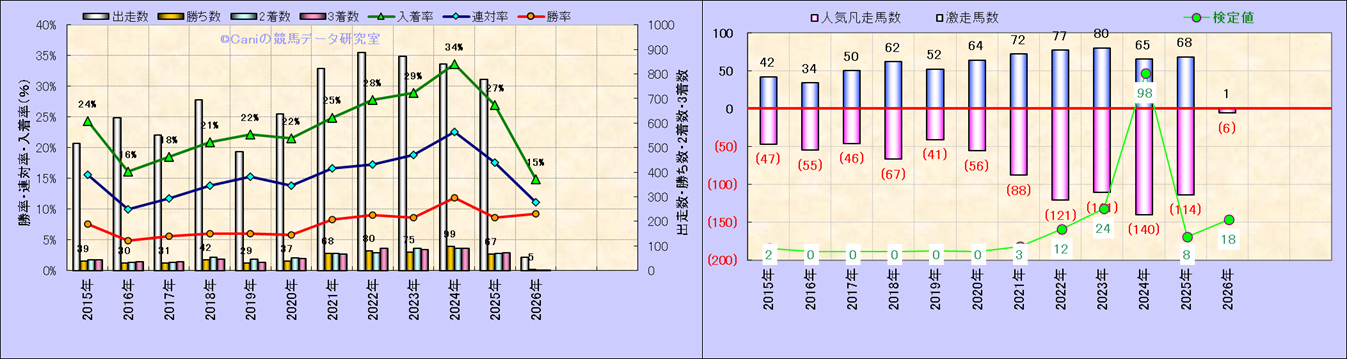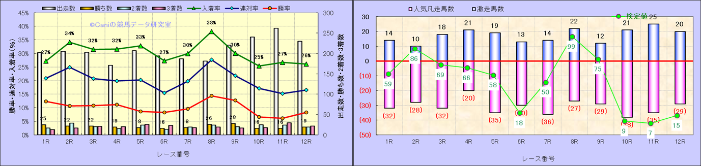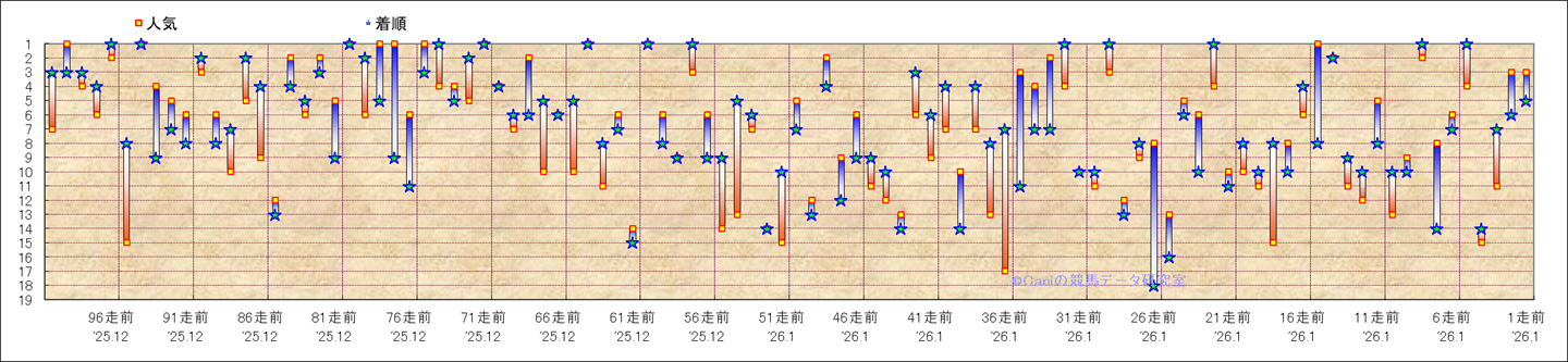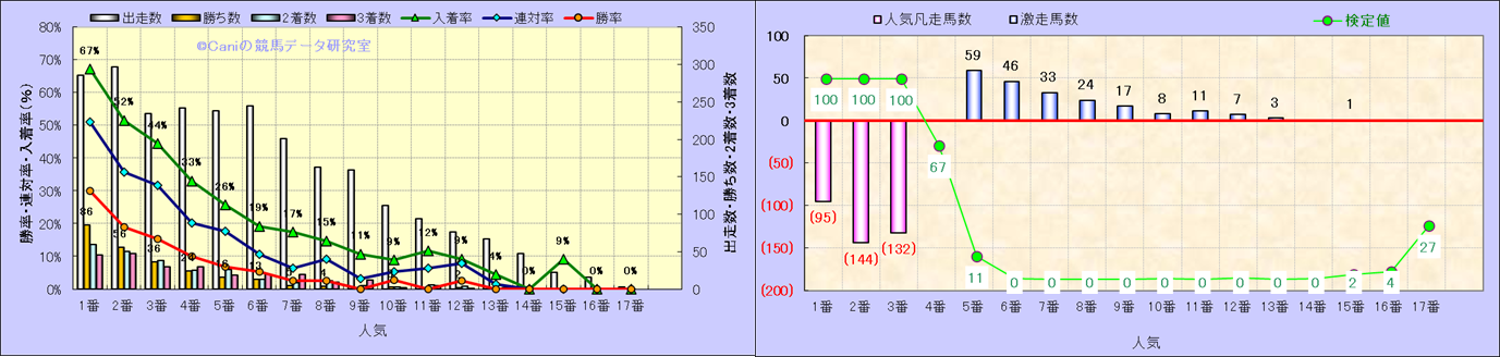 人気凡走馬:1-3番人気で着外、激走馬:5-18番人気で入着 |