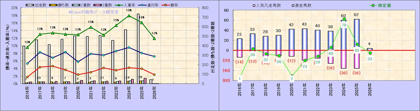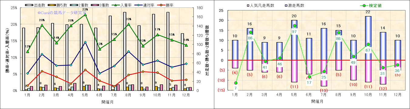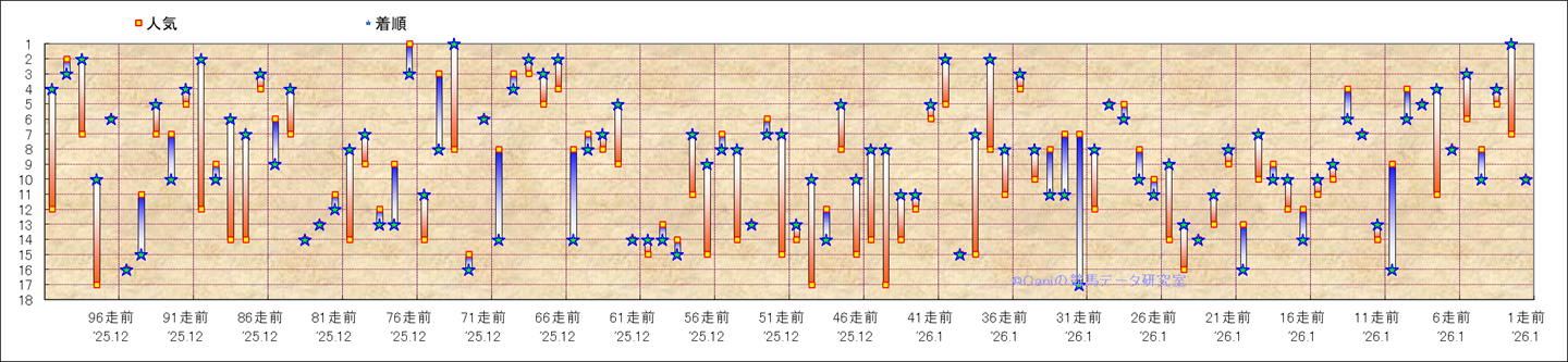 人気凡走馬:1-3番人気で着外、激走馬:5-18番人気で入着 |