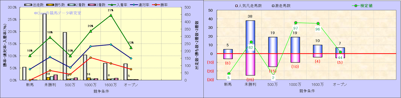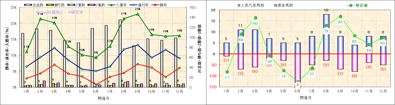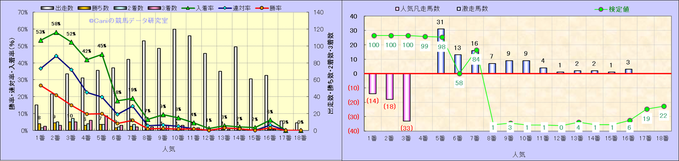 人気凡走馬:1-3番人気で着外、激走馬:5-18番人気で入着 |