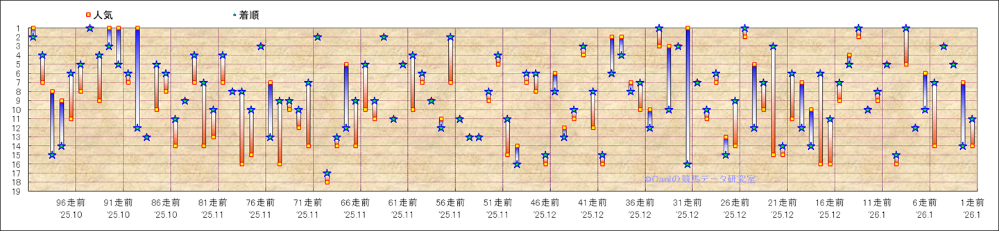 近100騎乗の人気と着順 |