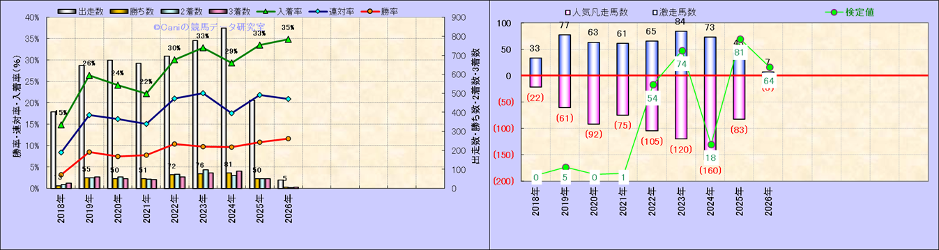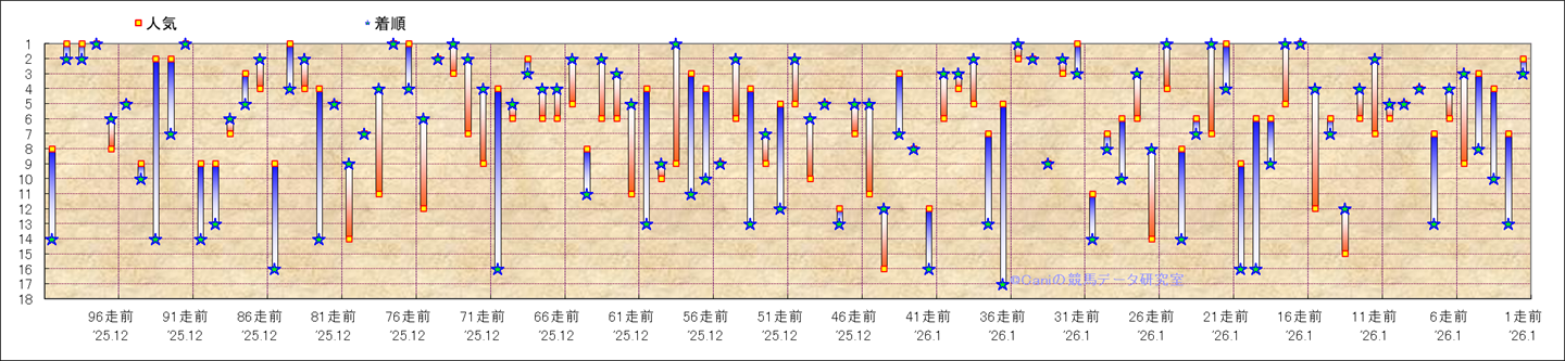 人気凡走馬:1-3番人気で着外、激走馬:5-18番人気で入着 |