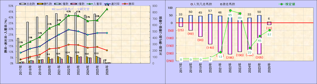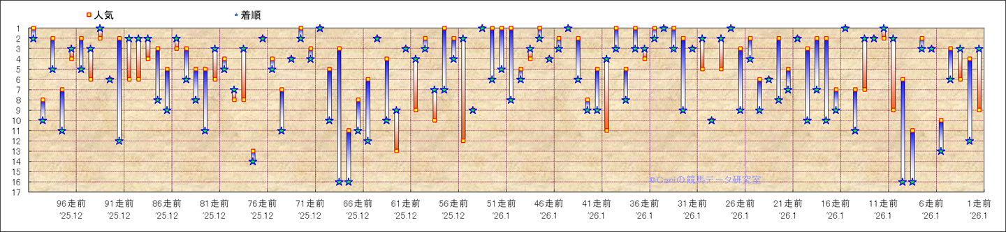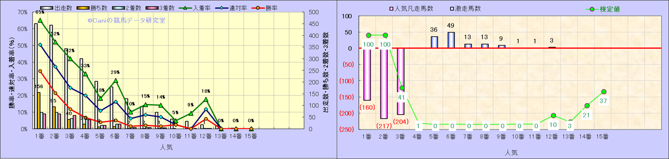 人気凡走馬:1-3番人気で着外、激走馬:5-18番人気で入着 |